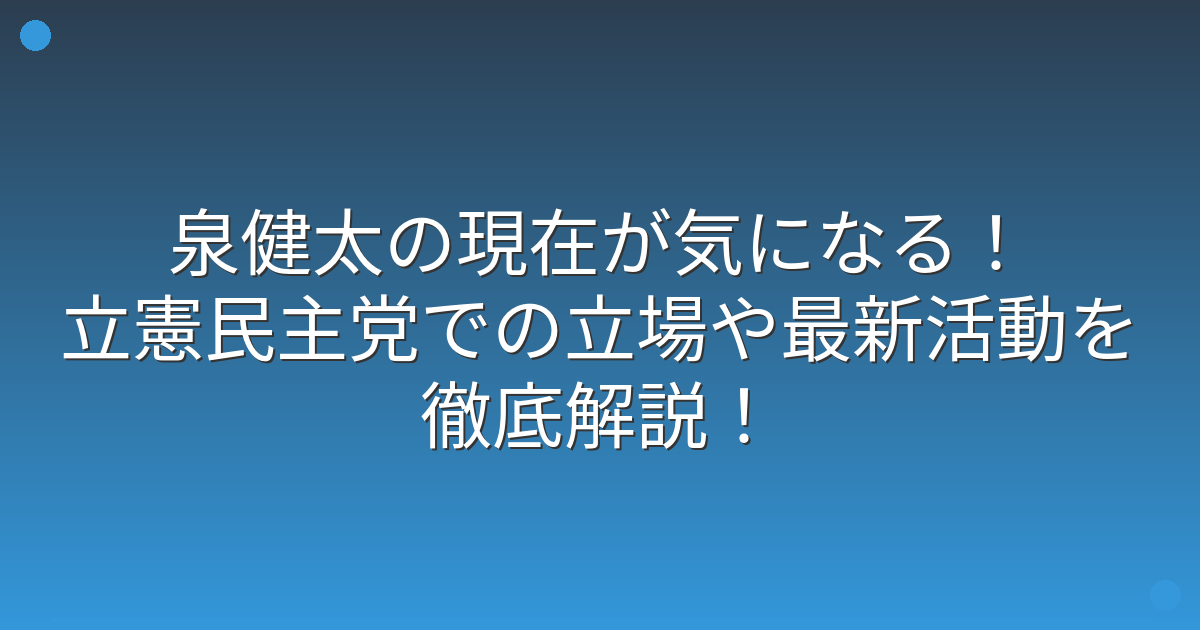 今回は、泉健太さんの現在の活動や立場、そして今後の展望についてお伝えしてきました。