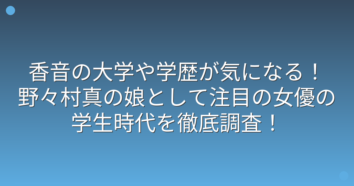 香音の大学や学歴が気になる!野々村真の娘として注目の女優の学生時代を徹底調査!