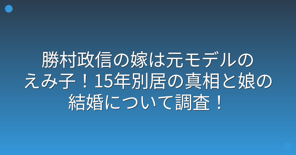 今回は、勝村政信さんの嫁である元モデルのえみ子さんとの結婚生活や、15年にも及ぶ別居の真相、そして娘さんの結婚についてお伝えしてきました。