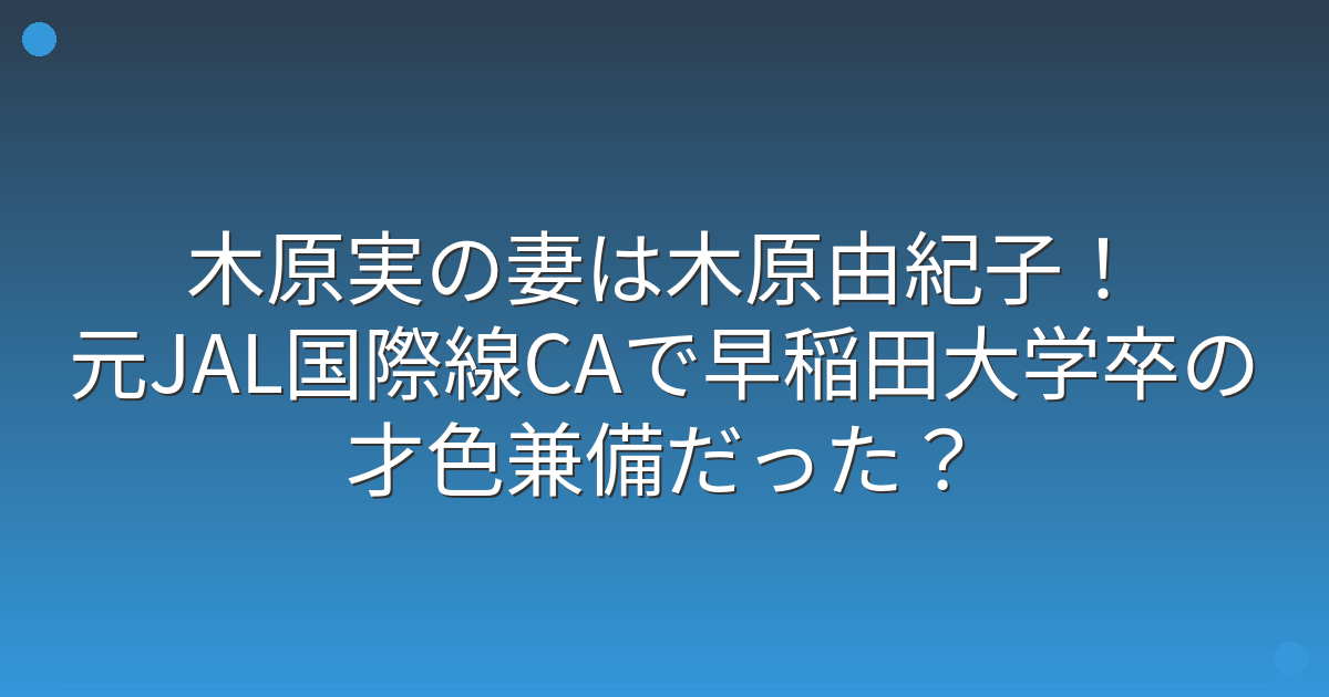 木原実の妻は木原由紀子!早稲田大学卒業で元JAL国際線CA