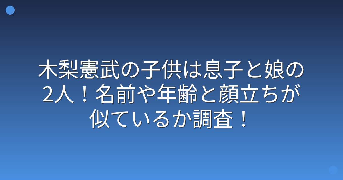 そんな木梨憲武さんの子供について、息子さんや娘さんの情報が気になっている方も多いのではないでしょうか。
