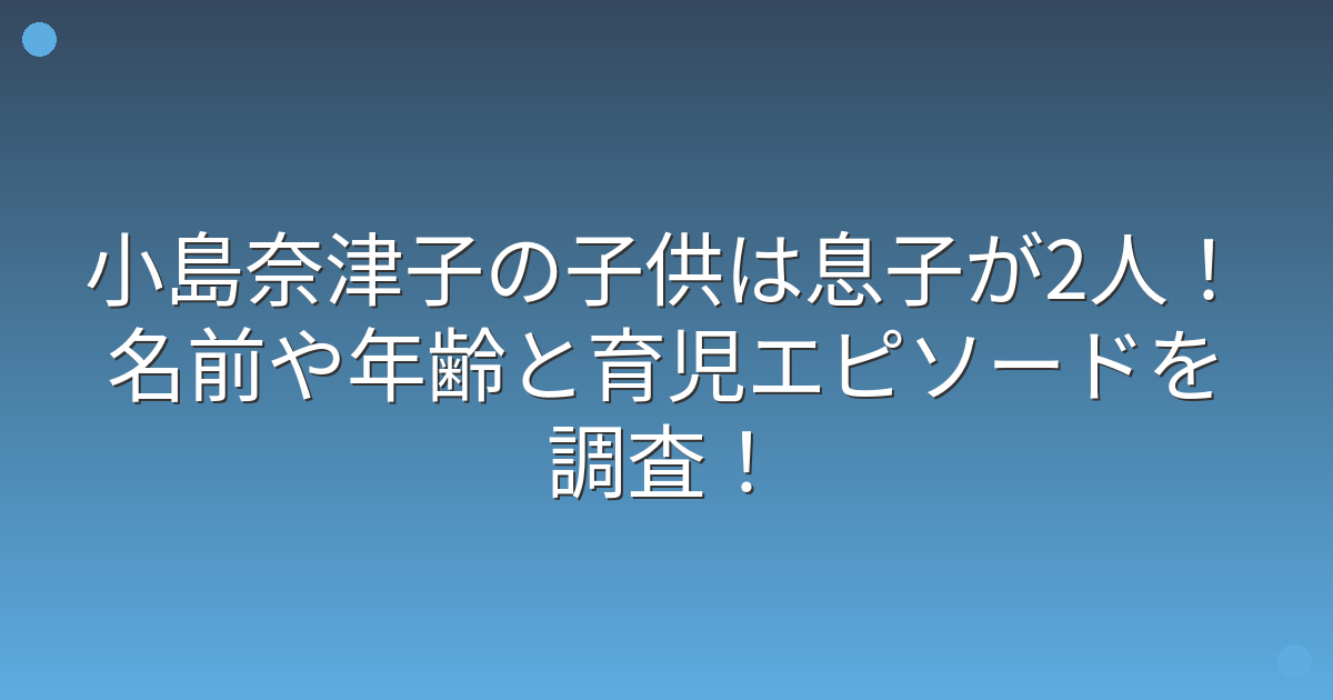 そこで今回は、小島奈津子さんの子供の人数や名前、年齢、そして育児エピソードについて詳しく見ていきましょう!