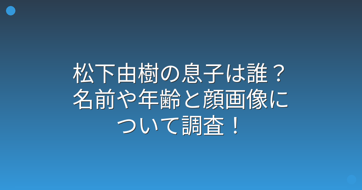 松下由樹に息子はいるのか