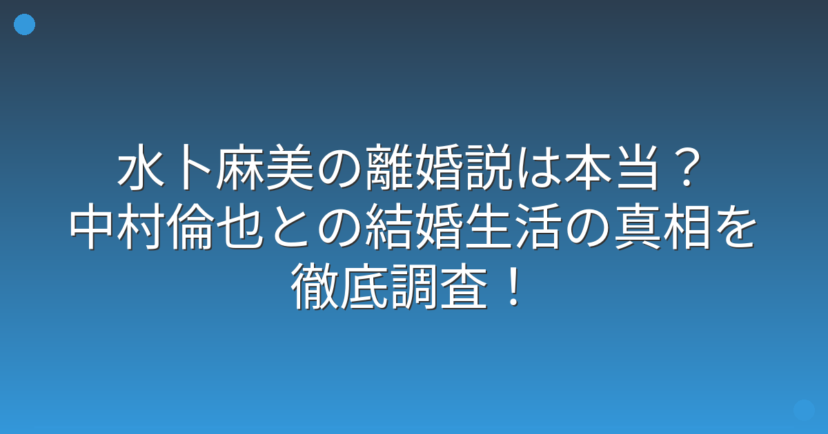水卜麻美さんと中村倫也さんの離婚説は完全な噂に過ぎず、実際には仲睦まじい結婚生活を送っていることが分かりました。