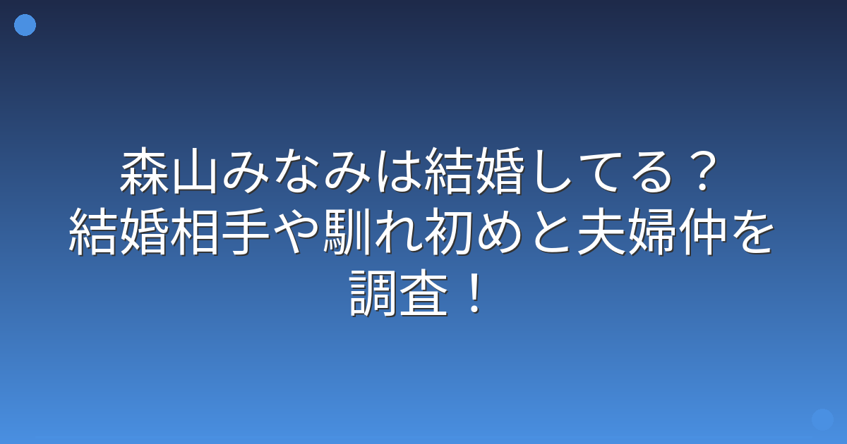 まず気になるのは、森山みなみさんが現在結婚しているのかという点ですよね。