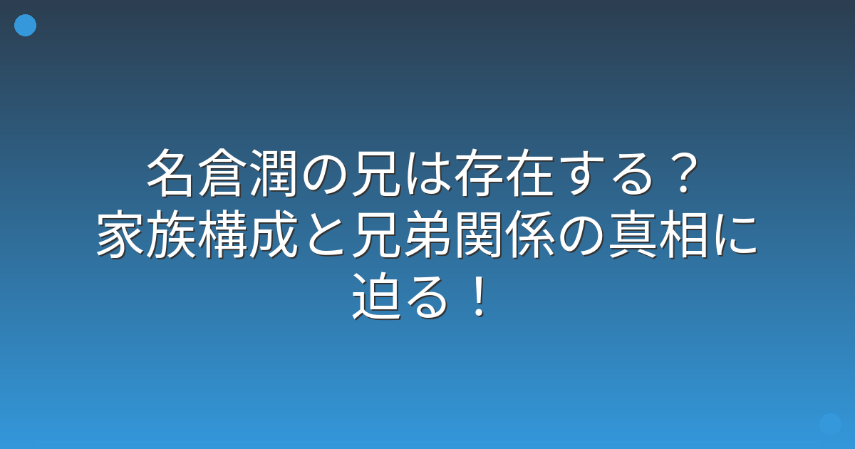 名倉潤さんの兄に関する情報は極めて限られていますが、いくつかの観点から考察してみましょう。