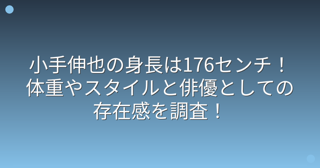 小手伸也の身長は176センチ!体重やスタイルと俳優としての存在感を調査!