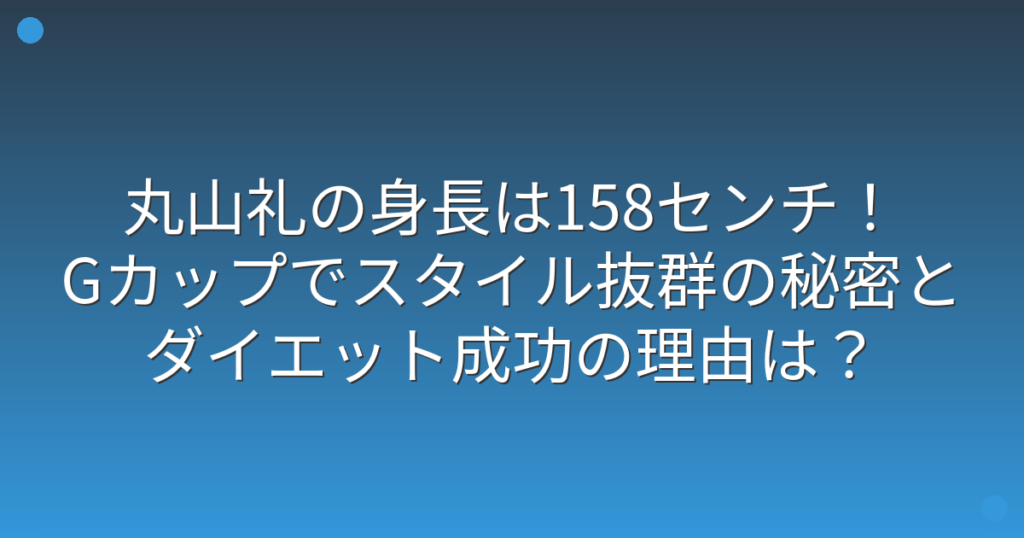 お笑いタレントや女優として活躍している丸山礼さんの身長が話題になっていますね。 小柄ながらも抜群のスタイルを持つ丸山礼さんは、最近のダイエット成功でさらに注目を集めています。 そこで今回は、丸山礼さんの身長やスタイルの秘密、ダイエット成功... -
