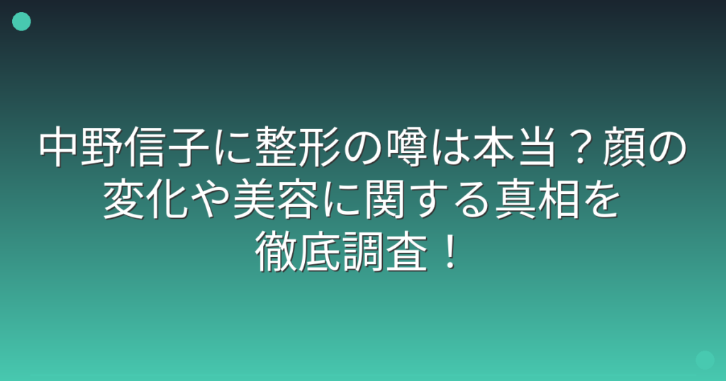 中野信子に整形の噂は本当?顔の変化や美容に関する真相を徹底調査!