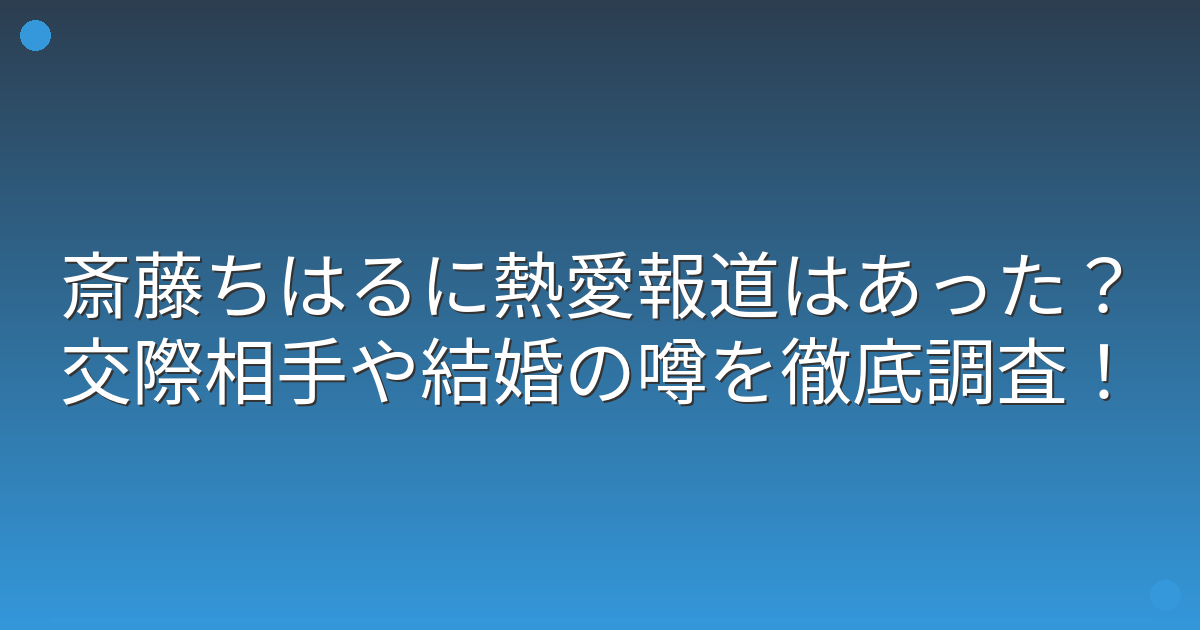 調査の結果、斎藤ちはるさんに関する熱愛報道や交際相手の情報は一切確認できず、クリーンなイメージを保っていることが分かりました。