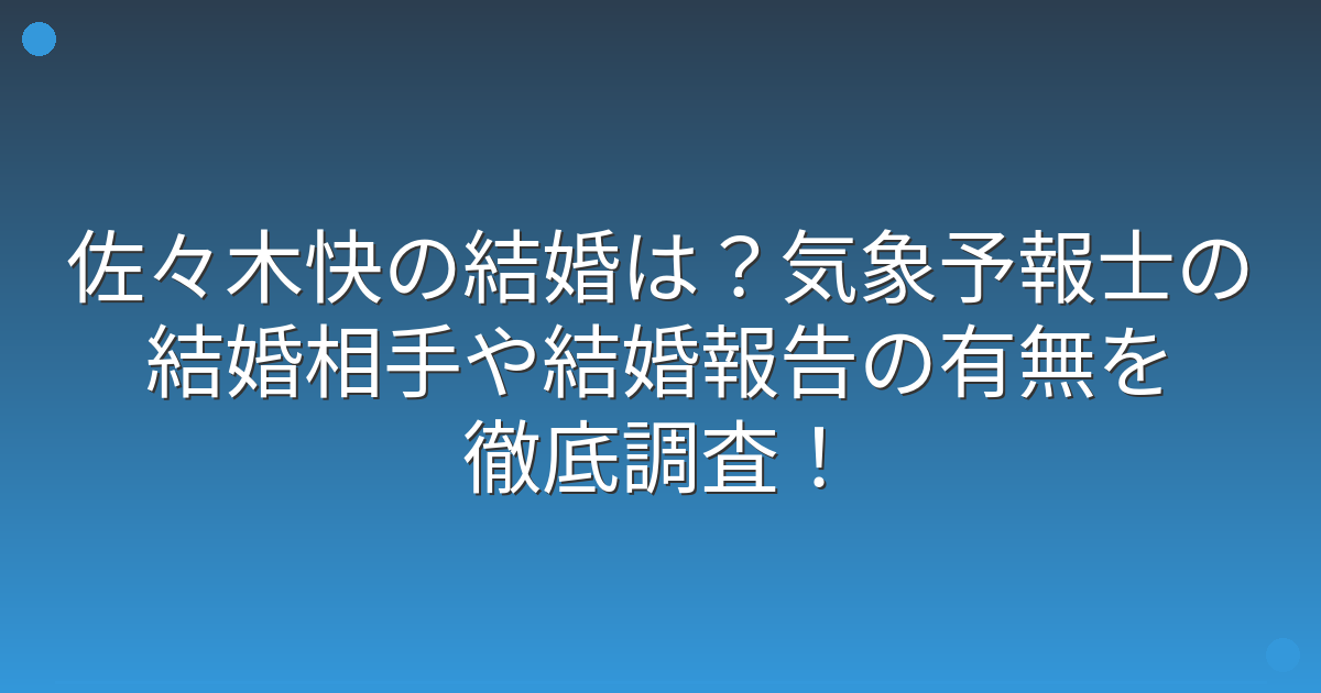 気象予報士としてテレビ番組に出演している佐々木快さんの結婚について、気になっている方も多いのではないでしょうか。