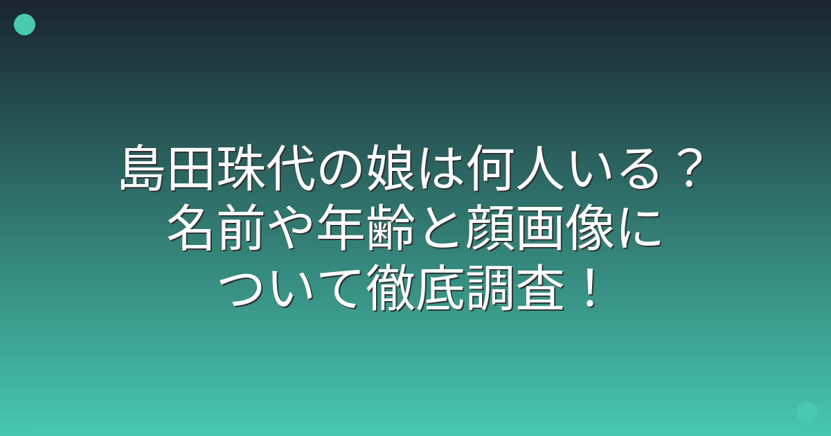 そこで今回は、島田珠代さんの娘は何人いるのか、名前や年齢、顔画像について詳しく見ていきましょう!