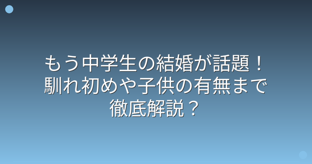 もう中学生の結婚が話題!馴れ初めや子供の有無まで徹底解説?