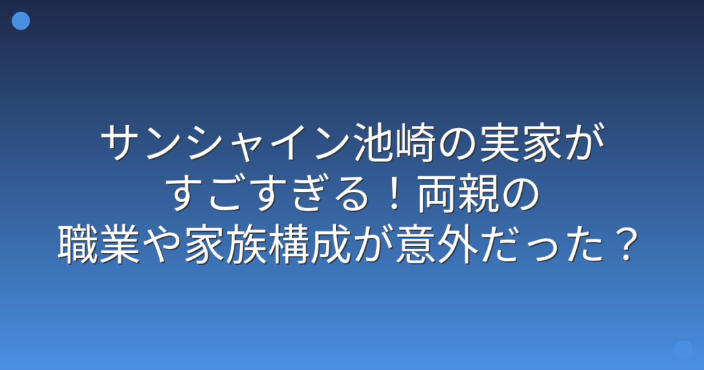 サンシャイン池崎の実家がすごすぎる!両親の職業や家族構成が意外だった?