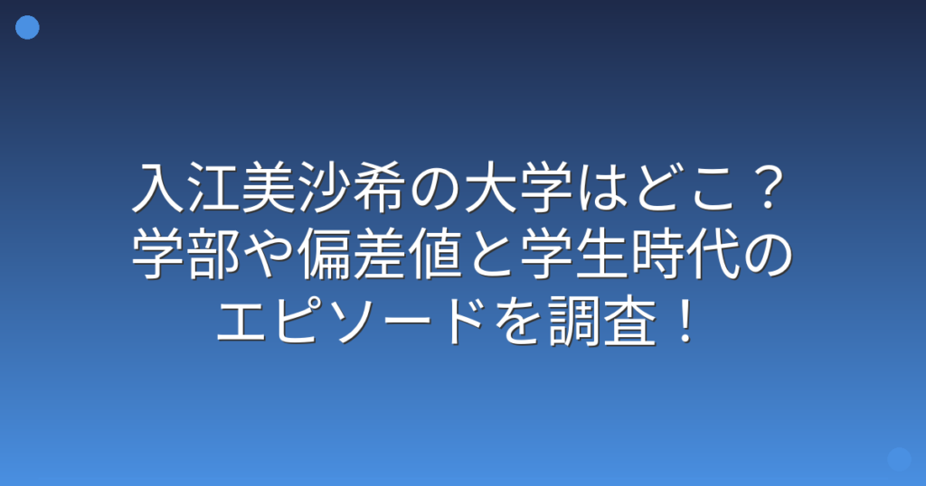 入江美沙希の大学はどこ?学部や偏差値と学生時代のエピソードを調査!