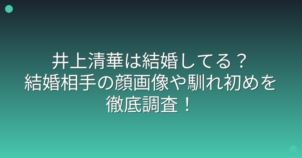 井上清華は結婚してる?結婚相手の顔画像や馴れ初めを徹底調査!
