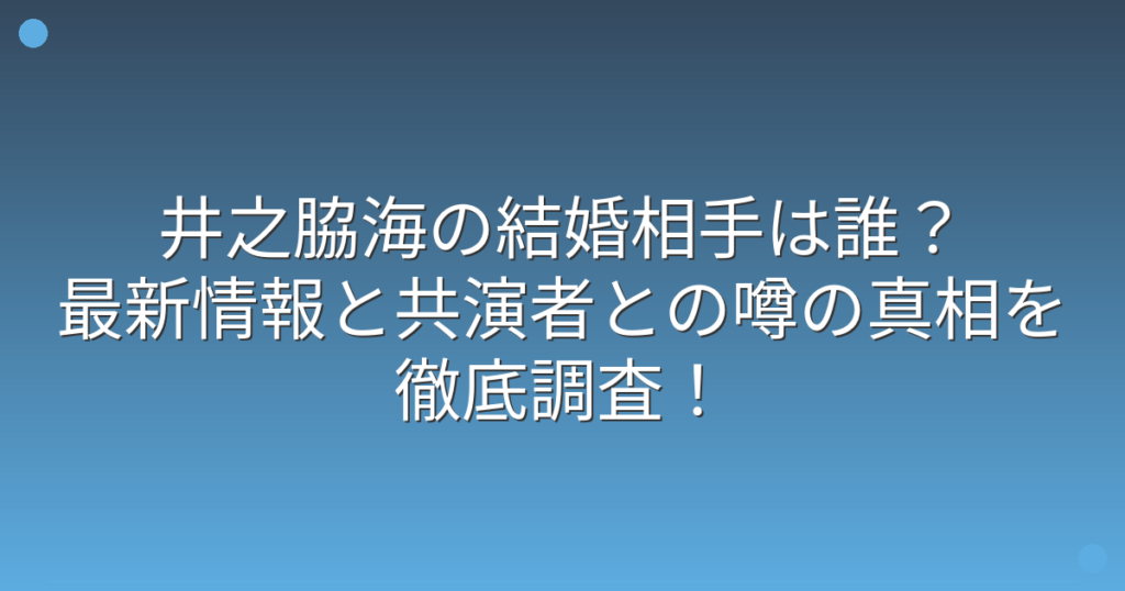 俳優の井之脇海さんの結婚相手について、インターネット上で様々な噂が飛び交っていますね。 ドラマや映画で夫婦役を演じることも多い井之脇海さんですが、実際のところ結婚しているのか、結婚相手は誰なのか気になっている方も多いのではないでしょうか。... -