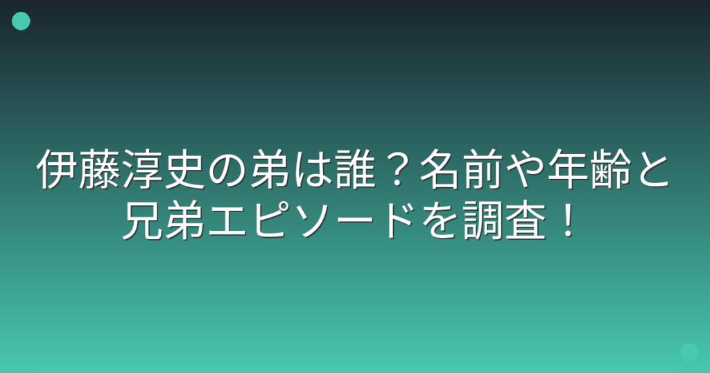 伊藤淳史の弟は誰?名前や年齢と兄弟エピソードを調査!