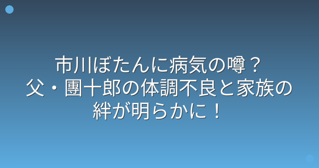 市川ぼたんに病気の噂?父・團十郎の体調不良と家族の絆が明らかに!