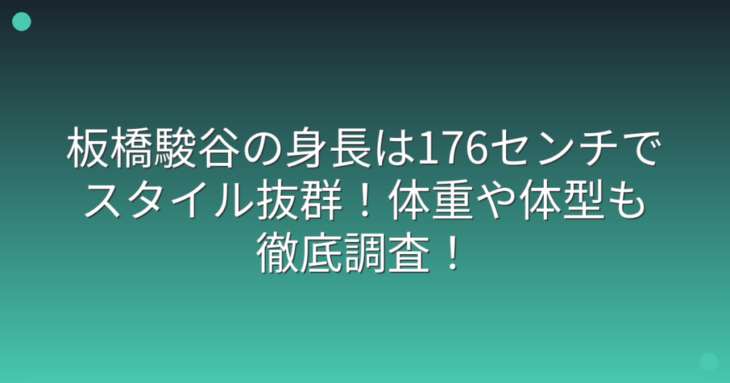 俳優として活躍する板橋駿谷さんが、そのスタイルの良さで注目を集めていますね。 画面越しに見る姿はとてもスタイリッシュで、実際の身長や体型が気になる方も多いのではないでしょうか。 そこで今回は、板橋駿谷さんの身長や体重、体型について詳しく見... -