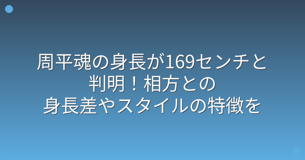 周平魂の身長が169センチと判明!相方との身長差やスタイルの特徴を徹底解説!