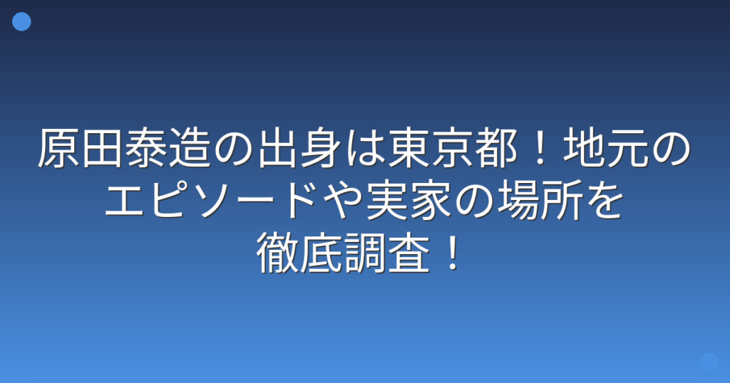 俳優やお笑い芸人として長年活躍している原田泰造さんですが、その出身地について気になっている方も多いのではないでしょうか。 ネプチューンのメンバーとして人気を博し、現在は俳優としても幅広く活動している原田泰造さんの地元や実家について、詳しく...