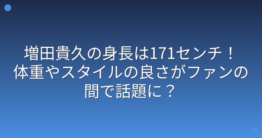 NEWSのメンバーとして長年活躍してきた増田貴久さんですが、その身長やスタイルについて気になっている方も多いのではないでしょうか。 アイドルとしての華やかなパフォーマンスや、ファッションセンスの良さで知られる増田貴久さんですが、実際の身長はど...