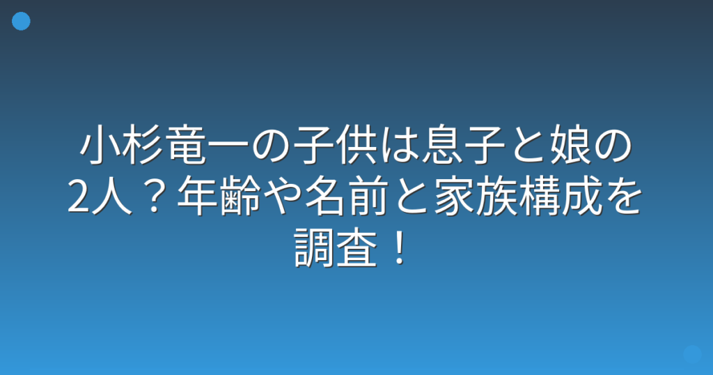 小杉竜一の子供は息子と娘の2人?年齢や名前と家族構成を調査!