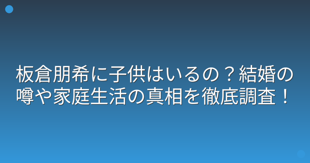 板倉朋希に子供はいるの?結婚の噂や家庭生活の真相を徹底調査!