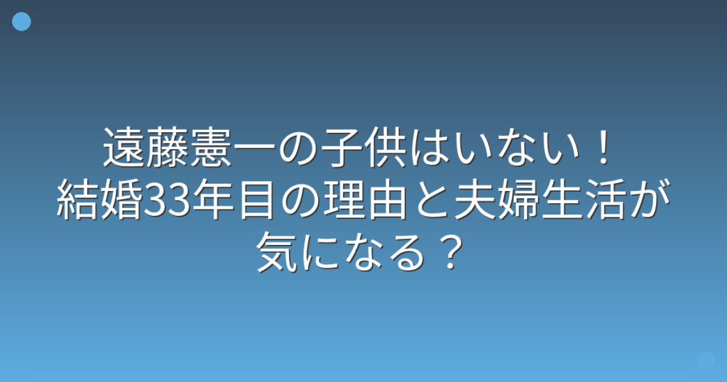 人気俳優の遠藤憲一さんについて、最近プライベートな話題が注目を集めています。 特に遠藤憲一さんの子供の有無について、多くの方が気になっているようですね。 そこで今回は、遠藤憲一さんの子供に関する情報や、結婚生活について詳しく見ていきましょ... -