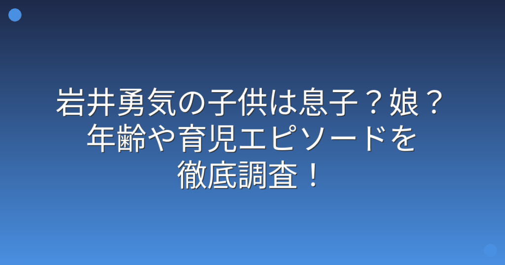 岩井勇気の子供は息子?娘?年齢や育児エピソードを徹底調査!