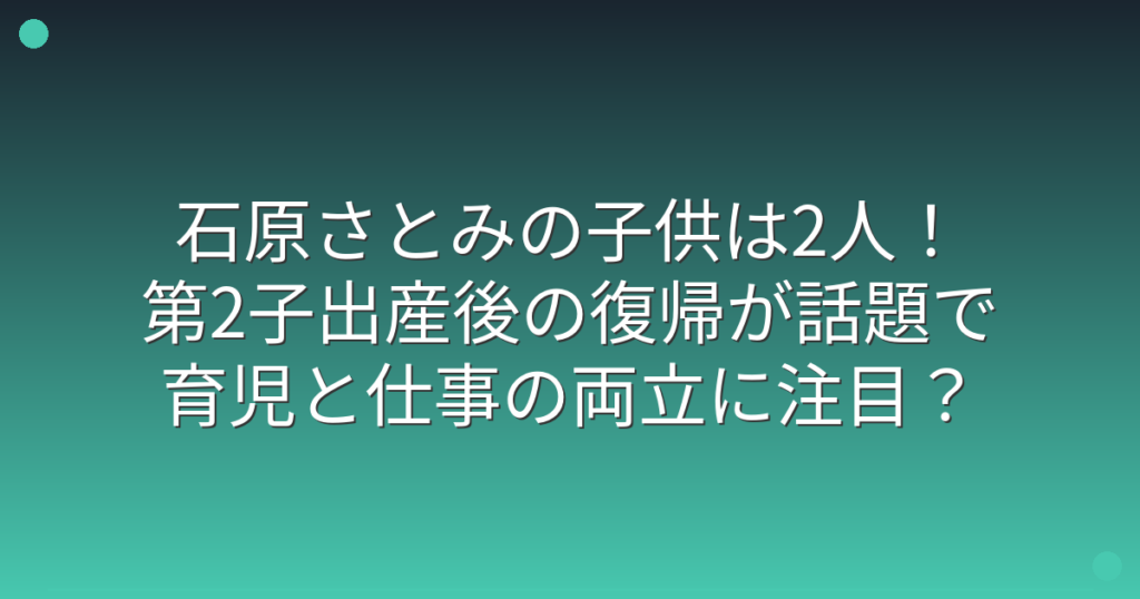 女優の石原さとみさんが2025年5月に第2子を出産し、現在は2児の母として育児と仕事を両立しながら徐々に公の活動に復帰していることが話題になっていますね。 出産後の美しい姿や育児に関する発言がメディアやSNSで大きな反響を呼んでおり、多くのファンが... -