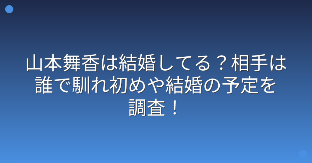 山本舞香は結婚してる?相手は誰で馴れ初めや結婚の予定を調査!