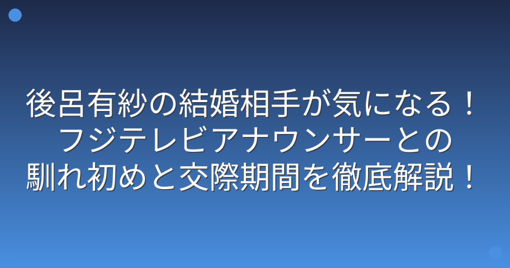 後呂有紗の結婚相手が気になる!フジテレビアナウンサーとの馴れ初めと交際期間を徹底解説!