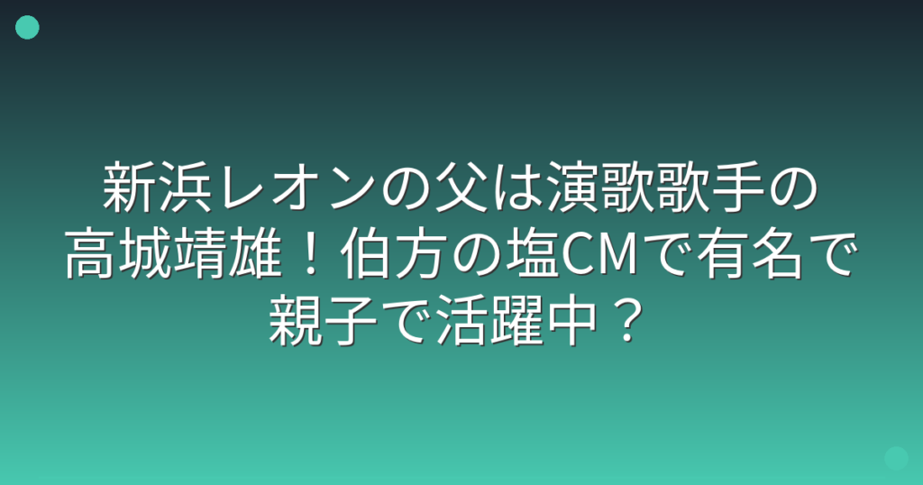 新浜レオンの父は演歌歌手の高城靖雄!伯方の塩CMで有名で親子で活躍中?