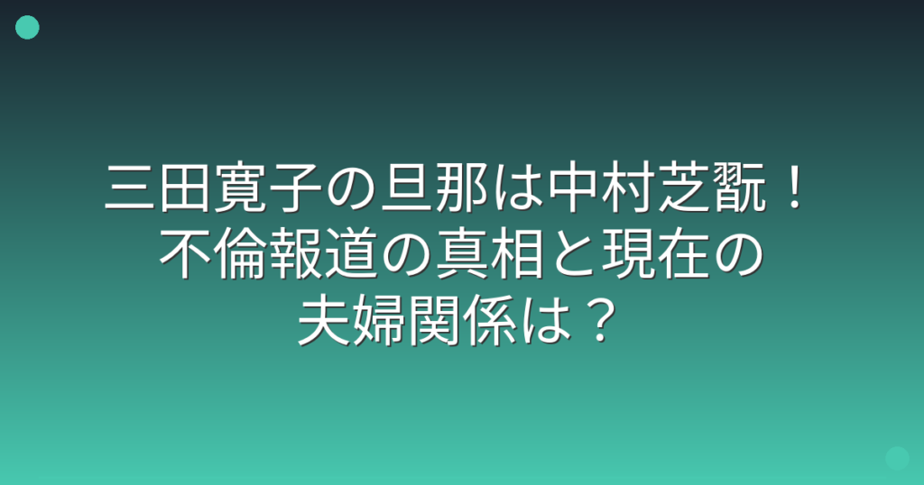 女優でタレントの三田寛子さんの旦那である中村芝翫さんが、度重なる不倫報道で話題になっていますね。 2025年10月には三田寛子さんがSNSで夫婦円満をアピールする投稿をされましたが、その裏では愛人との関係が報じられるなど、複雑な夫婦関係が注目を集... -