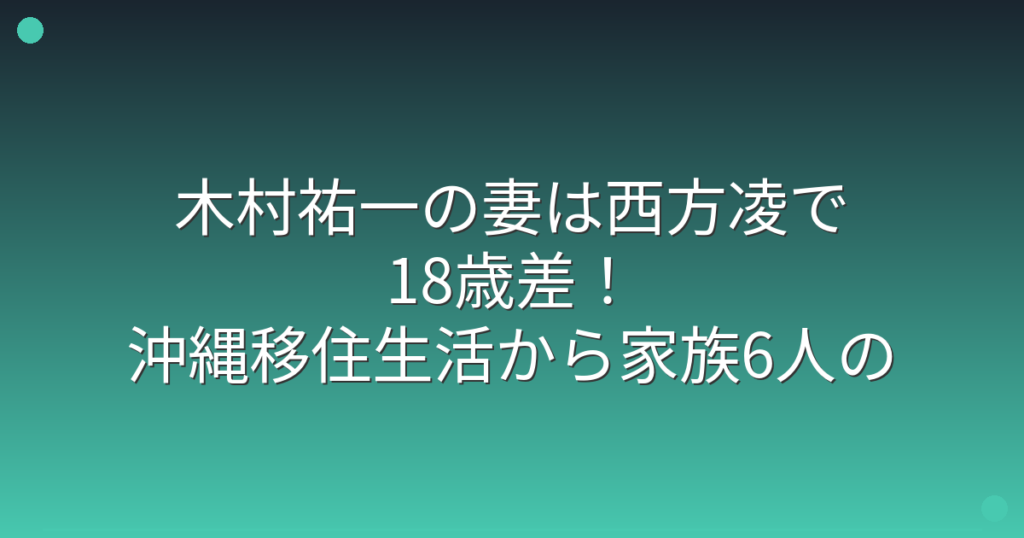 木村祐一の妻は西方凌で18歳差!沖縄移住生活から家族6人の近況が明らかに!