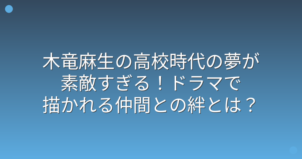 木竜麻生の高校時代の夢が素敵すぎる!ドラマで描かれる仲間との絆とは?