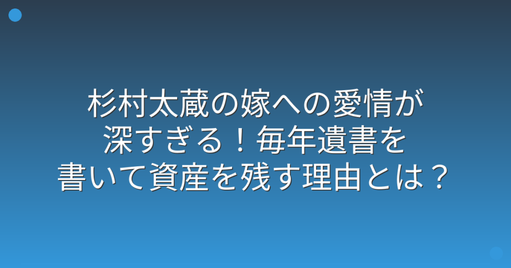 杉村太蔵の嫁への愛情が深すぎる!毎年遺書を書いて資産を残す理由とは?