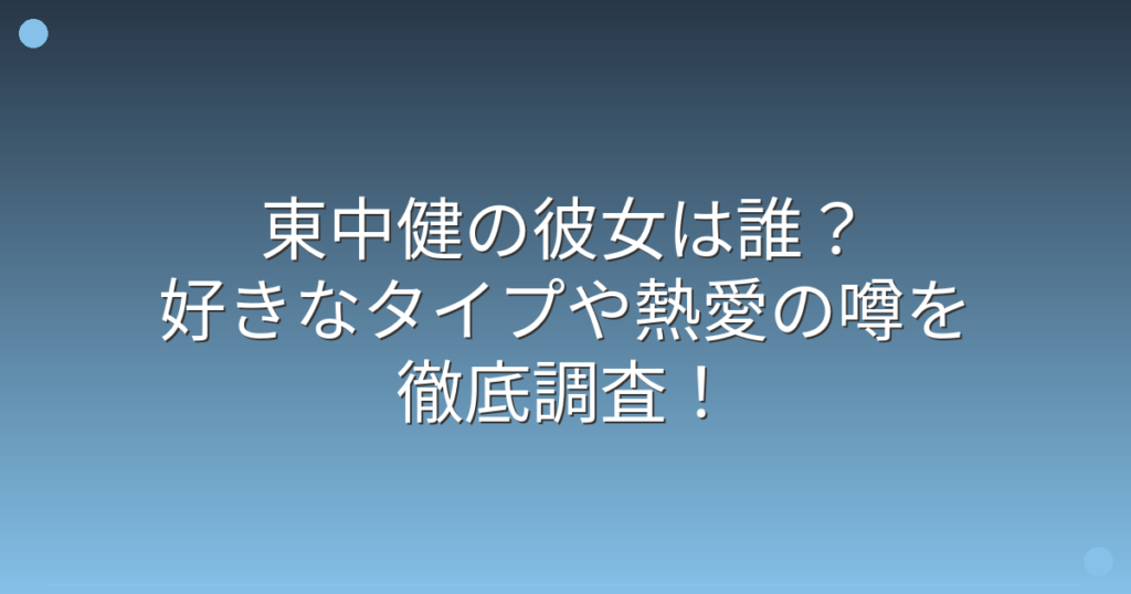 東中健の彼女は誰?好きなタイプや熱愛の噂を徹底調査!