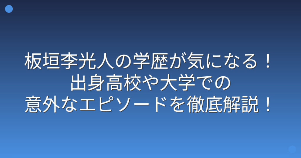 板垣李光人の学歴が気になる!出身高校や大学での意外なエピソードを徹底解説!