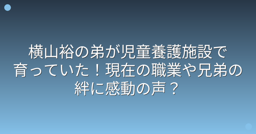 横山裕の弟が児童養護施設で育っていた!現在の職業や兄弟の絆に感動の声?