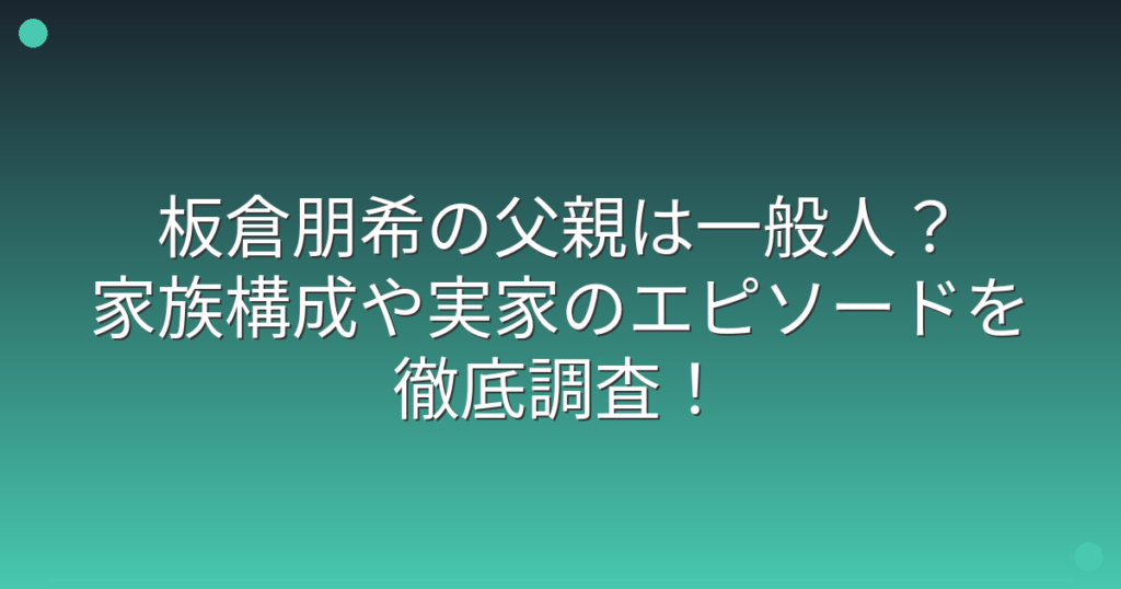 板倉朋希の父親は一般人?家族構成や実家のエピソードを徹底調査!