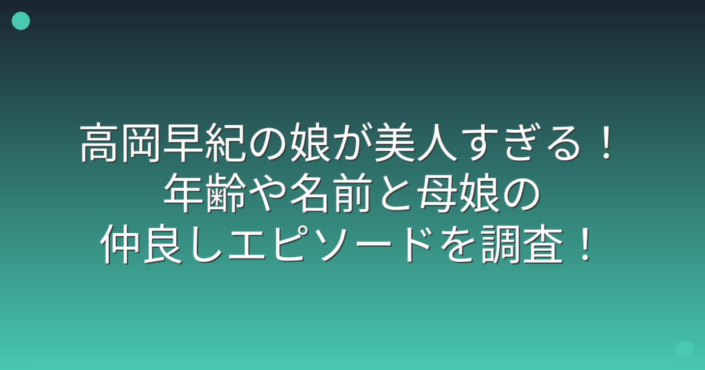 女優の高岡早紀さんが、最近SNSで娘さんとの写真を頻繁に公開し、大きな話題となっていますね。 母娘の仲睦まじい様子や、成長した娘さんの姿に多くのファンが注目しています。 そこで今回は、高岡早紀さんの娘さんの年齢や名前、そして母娘の素敵なエピソ... -