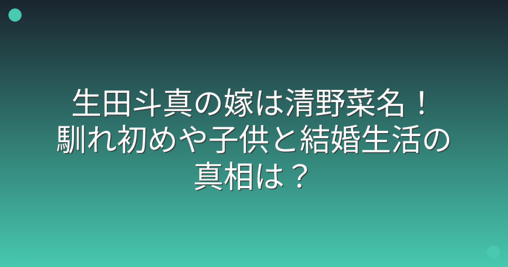俳優の生田斗真さんといえば、ジャニーズ事務所出身の実力派俳優として長年活躍されていますね。 そんな生田斗真さんの嫁が誰なのか、気になっている方も多いのではないでしょうか。 そこで今回は、生田斗真さんの嫁である清野菜名さんについて、馴れ初め...