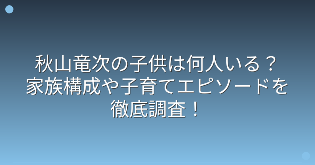 秋山竜次の子供は何人いる?家族構成や子育てエピソードを徹底調査!