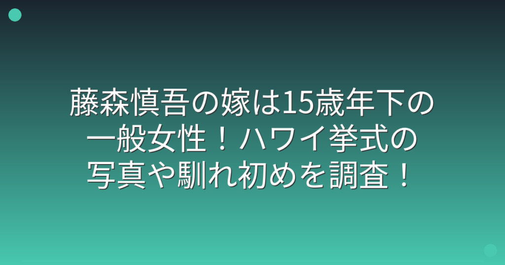 藤森慎吾の嫁は15歳年下の一般女性!ハワイ挙式の写真や馴れ初めを調査!