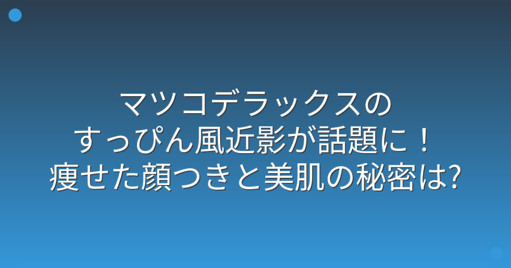テレビで見ない日はないほど活躍中のマツコデラックスさんですが、最近『月曜から夜ふかし』に出演した際の"すっぴん風"の近影が大きな話題になっていますね。 視聴者からは「レア」「痩せた」「顔つきが変わった」といった反応が続々と寄せられ、SNSでも... -