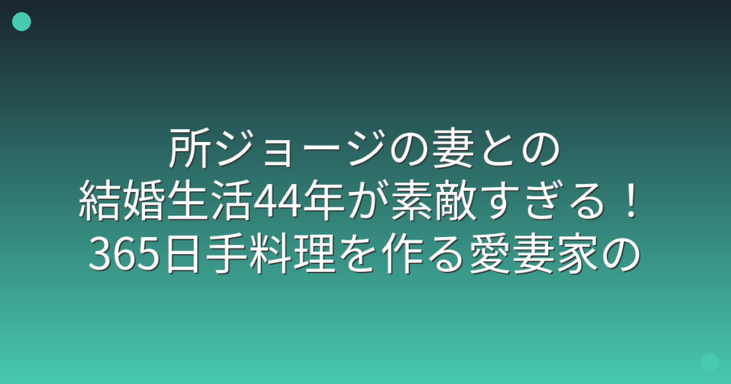 所ジョージの妻との結婚生活44年が素敵すぎる!365日手料理を作る愛妻家の真相とは?