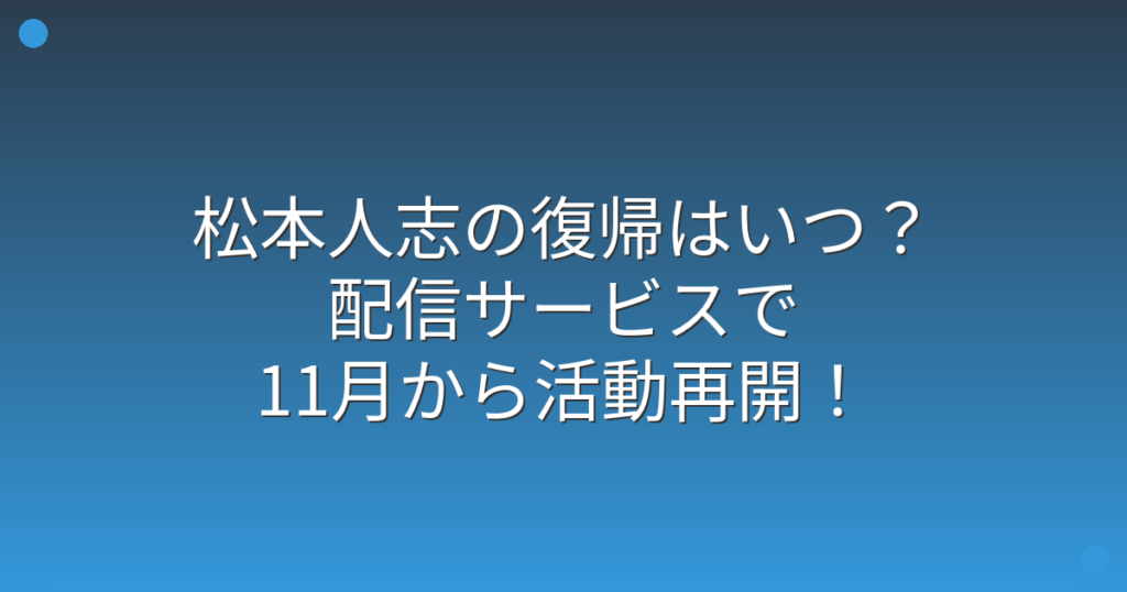 松本人志の復帰はいつ?配信サービスで11月から活動再開!料金や内容も判明!
